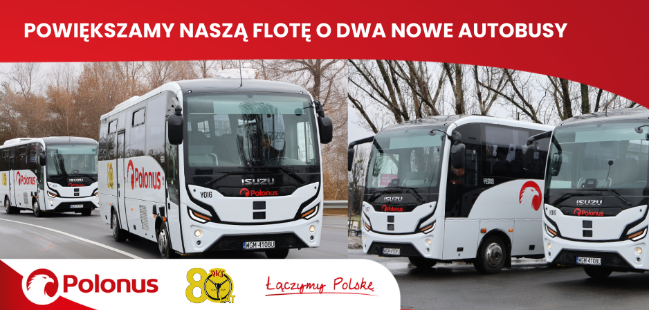 Do floty PKS Polonus dołączyły kolejne dwa fabrycznie nowe autokary marki ISUZU Grand Toro. Autokary te oferują przestronne wnętrza, wydajną klimatyzację oraz najnowocześniejsze systemy bezpieczeństwa. Grand Toro to autokary średniej wielkości o długości 8,5 m, przeznaczone do transportu na średnich trasach.